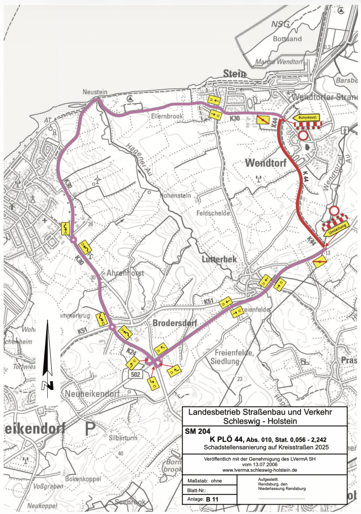 Der Landesbetrieb Straßenbau und Verkehr Schleswig-Holstein @lbv.sh führt im Rahmen der Schadstellensanierung 2025 Arbeiten auf der K44 durch.
